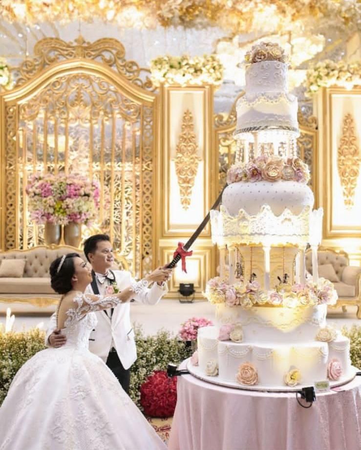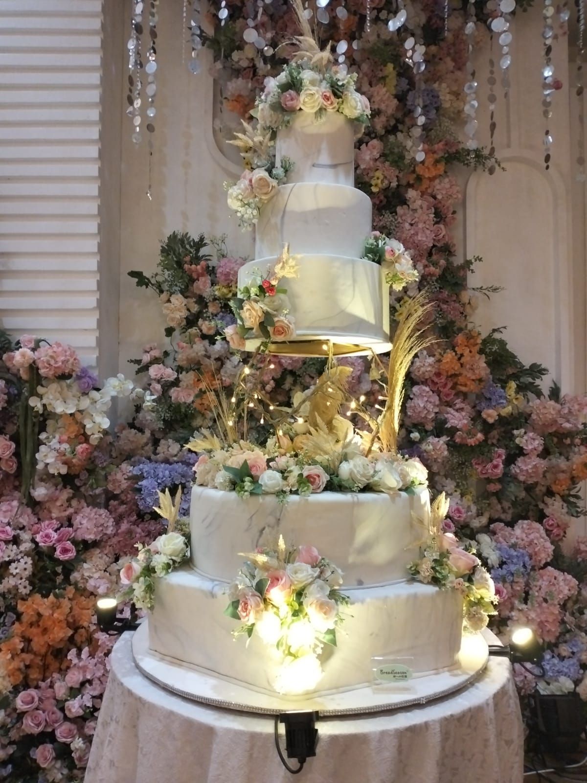 I chose pink-gold flower decoration for my wedding cake and they could make it beautiful.